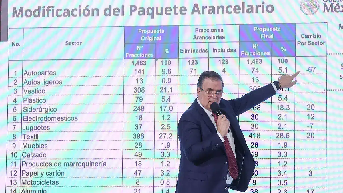 El secretario explicó en conferencia de prensa mañanera que los aranceles fueron establecidos en 17 sectores estratégicos donde los productos textiles, automotrices y de acero extranjero tenían un costo menor al del mercado nacional, por lo que Ebrard enfatizó que fue una decisión económica y no política.