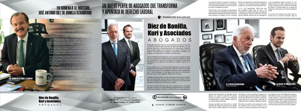 El 1 de noviembre de 2020 partió de este mundo José Antonio Diez de Bonilla Altamirano, un reconocido abogado especializado en Derecho Laboral. Quienes lo conocieron recuerdan a un hombre íntegro, profesional en todo lo que hacía, un amigo excepcional y un jefe de familia amoroso que hoy vive en la mente y corazones de su esposa, sus cuatro hijos y nueve nietos.