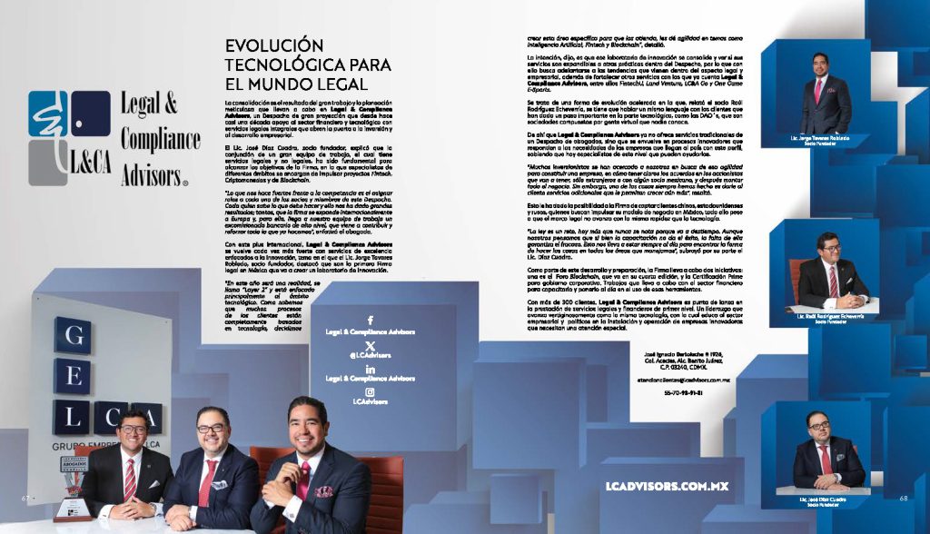 La consolidación es el resultado del gran trabajo y la planeación meticulosa que llevan a cabo en Legal & Compliance Advisors, un Despacho de gran proyección que desde hace casi una década apoya al sector financiero y tecnológico con servicios legales integrales que abren la puerta a la inversión y al desarrollo empresarial.