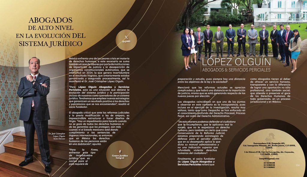 “Para López Olguín Abogados y Servicios Periciales, esto es una situación que detiene la evolución del sistema jurídico y la participación incluso de nosotros como operadores de un sistema jurídico. Tendremos que emplear nuevas estrategias que garanticen un resultado positivo a los derechos y patrimonios que se nos encomiendan”, resaltó el socio fundador.