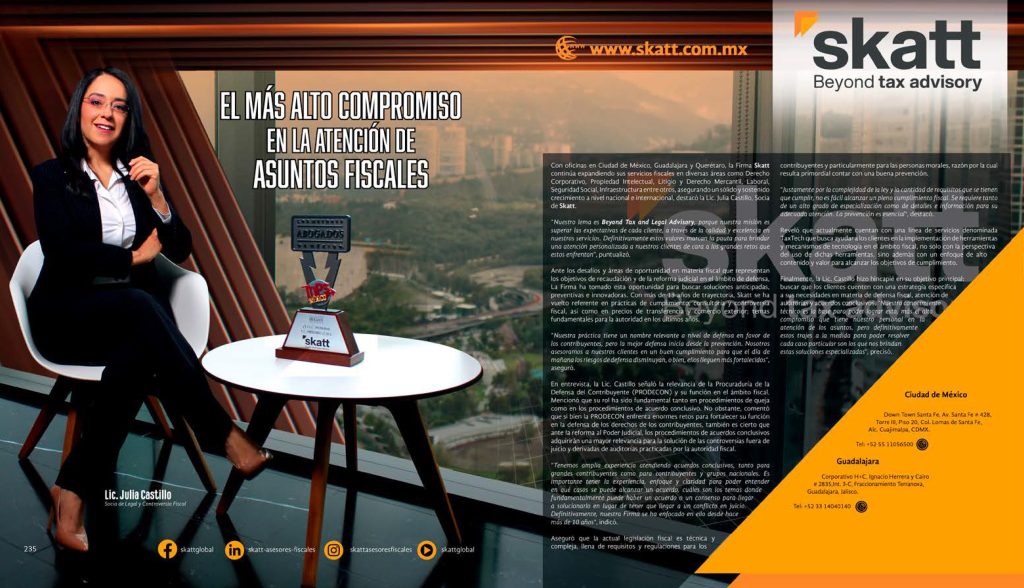 Además, informó que este año Skatt ha ampliado su gama de servicios fiscales a una gama de servicios legales para prestar una atención integral.