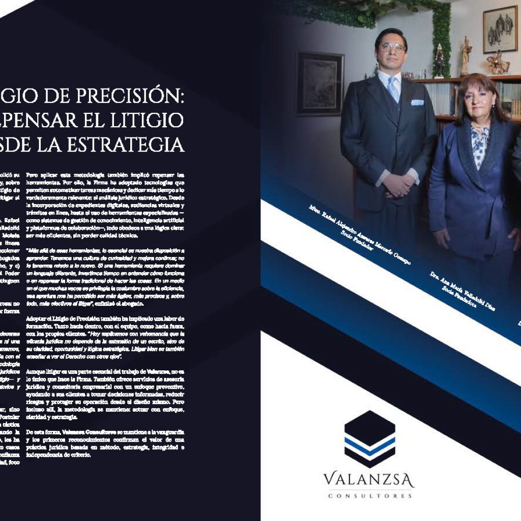 El 2024 fue un año clave para Valanzsa Consultores: consolidó su presencia en el foro, creció en experiencia y estructura y, sobre todo, fortaleció su perfil técnico con el desarrollo del “Litigio de Precisión”, una metodología que transforma la forma de litigar al integrar estratégia, rigor y eficiencia.